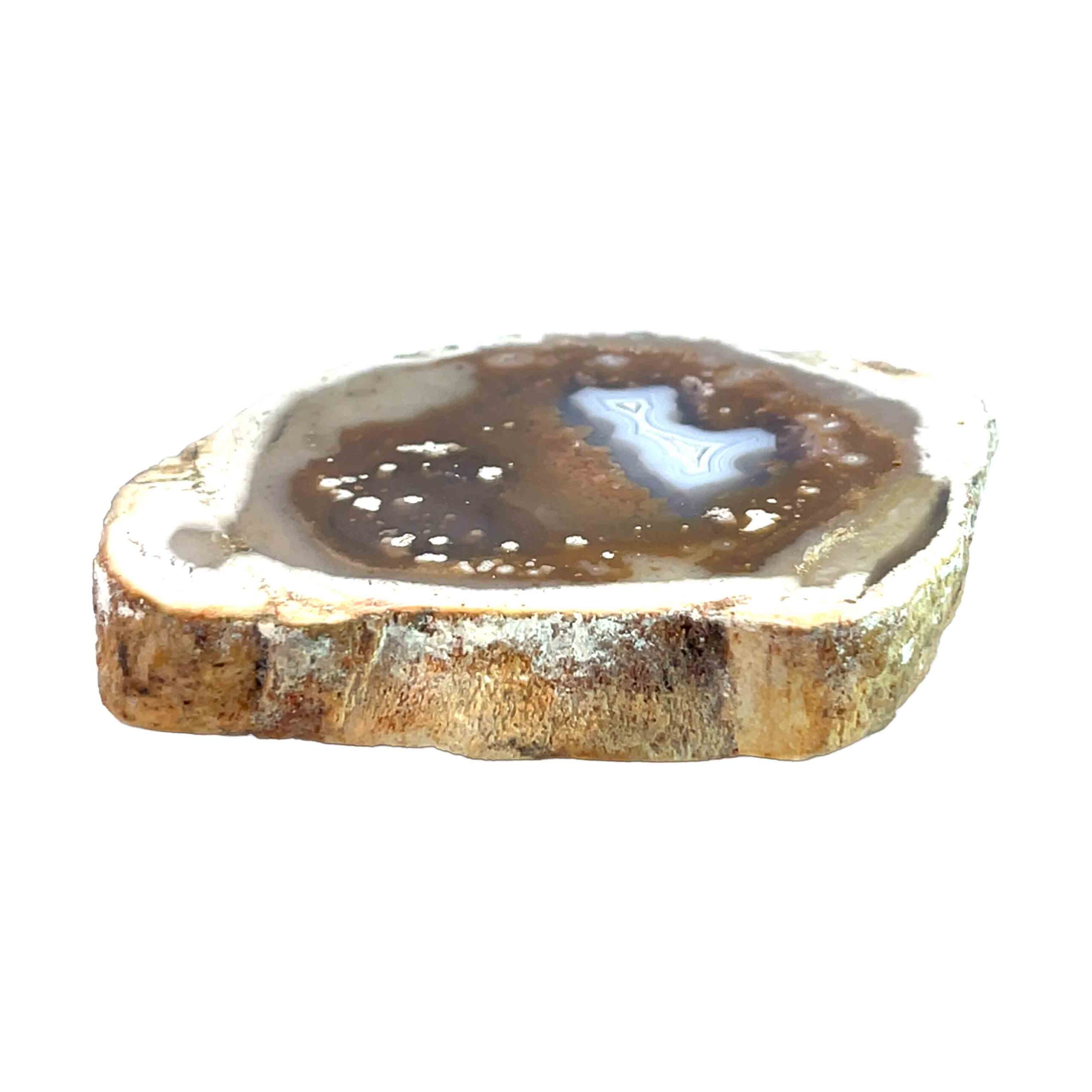Während des Versteinerungsprozesses wurden die ursprünglichen Holzstrukturen durch feine Schichten aus Chalcedon, Achat und Opal ersetzt. Dabei blieb die Maserung des Holzes vollständig erhalten – ein eindrucksvolles Zeugnis der Naturgeschichte. Die Kombination aus Achatisierung und partieller Opalisierung erzeugt ein einzigartiges Farbspiel mit seidigem Glanz und lebendiger Tiefe.