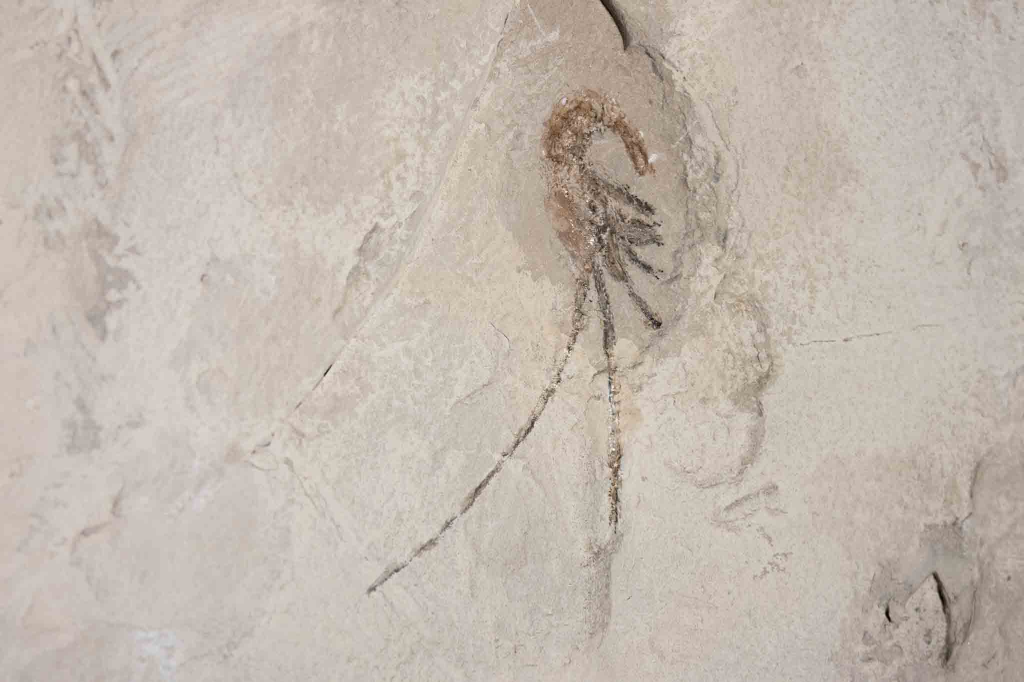 Ergänzt wird das Bild durch fossile Shrimps der Gattung Carpopenacus, die feinste Details der Gliedmaßen und Körpersegmente zeigen, sowie durch Nematonodus, einen räuberischen Knochenfisch, der das ökologische Spektrum dieses Fossils abrundet. Gemeinsam vermitteln diese Tiere ein lebendiges Bild der damaligen Nahrungsketten.