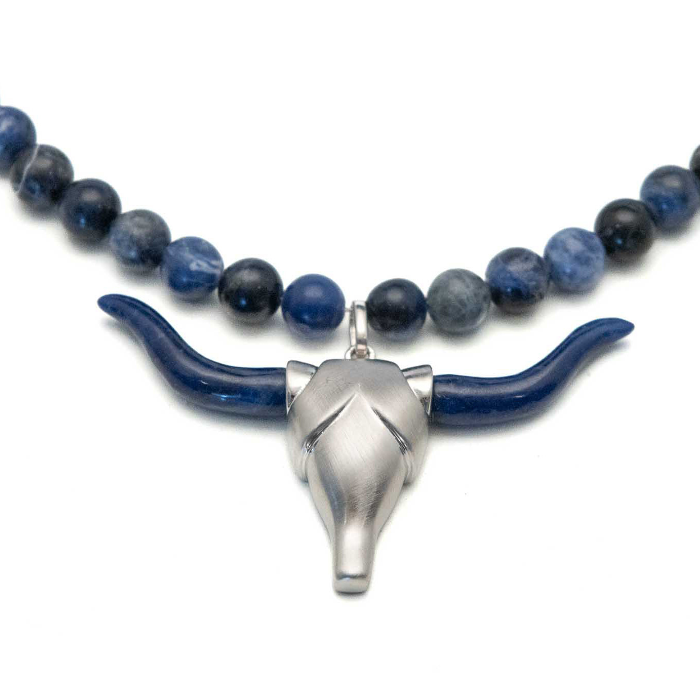 Sodalith Halskette mit Stieranhänger – Ausdruck von Klarheit und Stärke